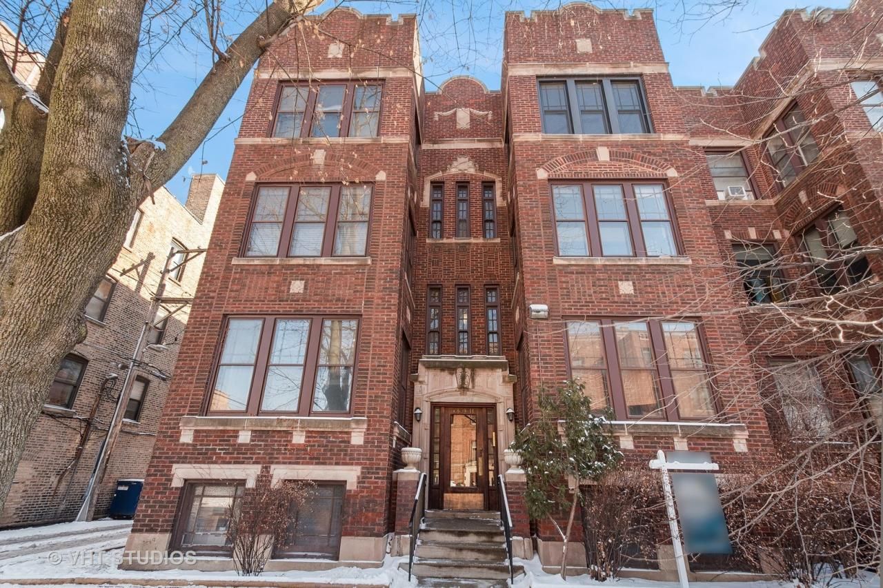 Bright and beautiful top floor, a quiet respite with new windows throughout. Enter into the foyer to find a charming and comfortable living room with decorative fireplace opening to the front sunroom with three exposures and lovely views. The unit is completely updated with 9' high ceilings, hardwood floors, and features a wonderful newer kitchen loaded with good cabinet storage, granite tops and stainless appliances; island seating. The wall was removed to provide an open layout to the dining room and sweet adjacent den/office, or 3rd bedroom in a pinch, which faces east. Two sunny bedrooms with south or east windows share the updated hall bathroom. Step out to the newly built rear porches common to the building, with a small area outside the unit door for your morning cup 'o Jo, and access down to a large shared yard with gardens SO rare to find this in the area! Enjoy the use of your own full-sized washer & dryer in the basement along with a large storage locker. Bike storage area too. Circuit breakers electric. Cats ok, no doggies, sorry. Ideal location in hot Rogers Park near Metra, Red Line and buses. Convenient to Loyola University and lakefront. Professionally managed building of owners, friendly and welcoming with good reserves.
