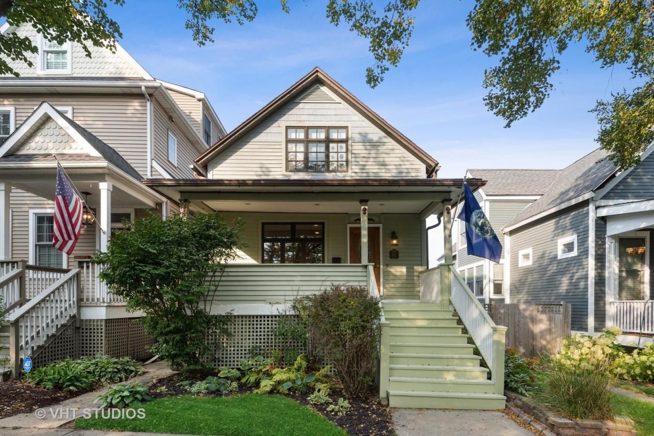 Bright and completely updated two-story farmhouse near town, trains, shopping, dining, University and lakefront. High ceilings throughout with hardwood floors, inlaid mahogany accents, deep moldings and a great floor plan with an office on the main floor. Sunny south-west kitchen overlooks a pretty yard and features maple cabinetry, granite counters & newer stainless appliances. Three nice-sized bedrooms on the second floor all with high ceilings, include a master suite with a walk-in closet, and full bath with jetted tub, plus a hall stackable washer and dryer. The mostly finished basement is on grade, with great natural light, and is a very comfortable space, newly insulated and waterproofed '19, with a family room and gas fireplace, large sitting room/home office, good storage in the utility room. Newer windows. Step out to enjoy an oasis of your own with a paver patio, pergola, home sauna, fenced yard and two car garage currently used for exercise with a rock climbing wall and large loft for additional storage Tear-off roof 2010 and HVAC '12 plus new split system AC wall units added on the second floor for auxillary cooling as needed. Water heater 2014.