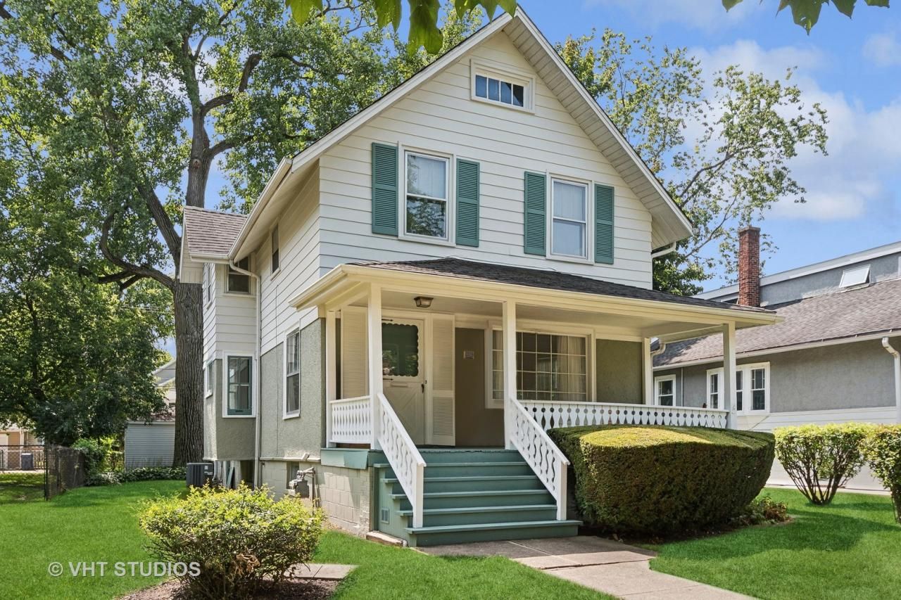 Wide welcoming front porch greets you when you arrive at this beautifully maintained, expanded farmhouse, loved for 57 years by the present owner. Step in to find a spacious charming and comfy home with lots of natural light, high ceilings and traditional floor plan featuring a fireplace in the living room, separate dining room, updated kitchen with newer flooring and appliances, walk-thru pantry area, a family room and den which look over the lovely large yard; 1/2 bath. Walk up to 4 true bedrooms on the 2nd floor, and a full hall bath. Potential to create another bathroom if needed in the future, with some reworking/remodeling. Central AC and heating, mostly hardwood floors, and a two garage garage off the alley. Add your personal decor and updating and enjoy a fantastic location near Lincolnwood school, Perkins Woods, Central Street with shopping and Metra, convenience to downtown Evanston and lakefront. Property to be sold in 'as is' condition.