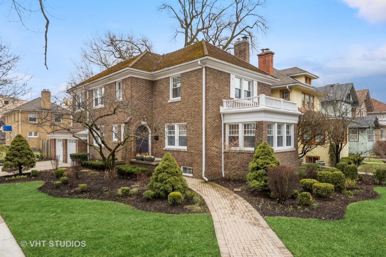 You will love the convenient location near Metra, and Central Street shops, east to the beach, 'EL' and hospital plus McCulloch just park steps away! This freshly painted brick two-story classic & traditional Colonial feels good all over! Beautiful architectural features include arches, moldings, tile roof, and gleaming hardwood floors throughout. This is a fine quality home with consistent, impeccable care combined with a new boiler 2023, newer kitchen, remodeled bath, windows, and 200amp electric service. And there is a walk-up attic with lots of potential if needed besides a sweet playroom area, wine storage and utility/laundry area in the basement. The private fenced-in paver patio space is ideal for seasonal entertaining. 2 car attached garage with loft storage has newer doors and openers. Absolutely move-in condition!